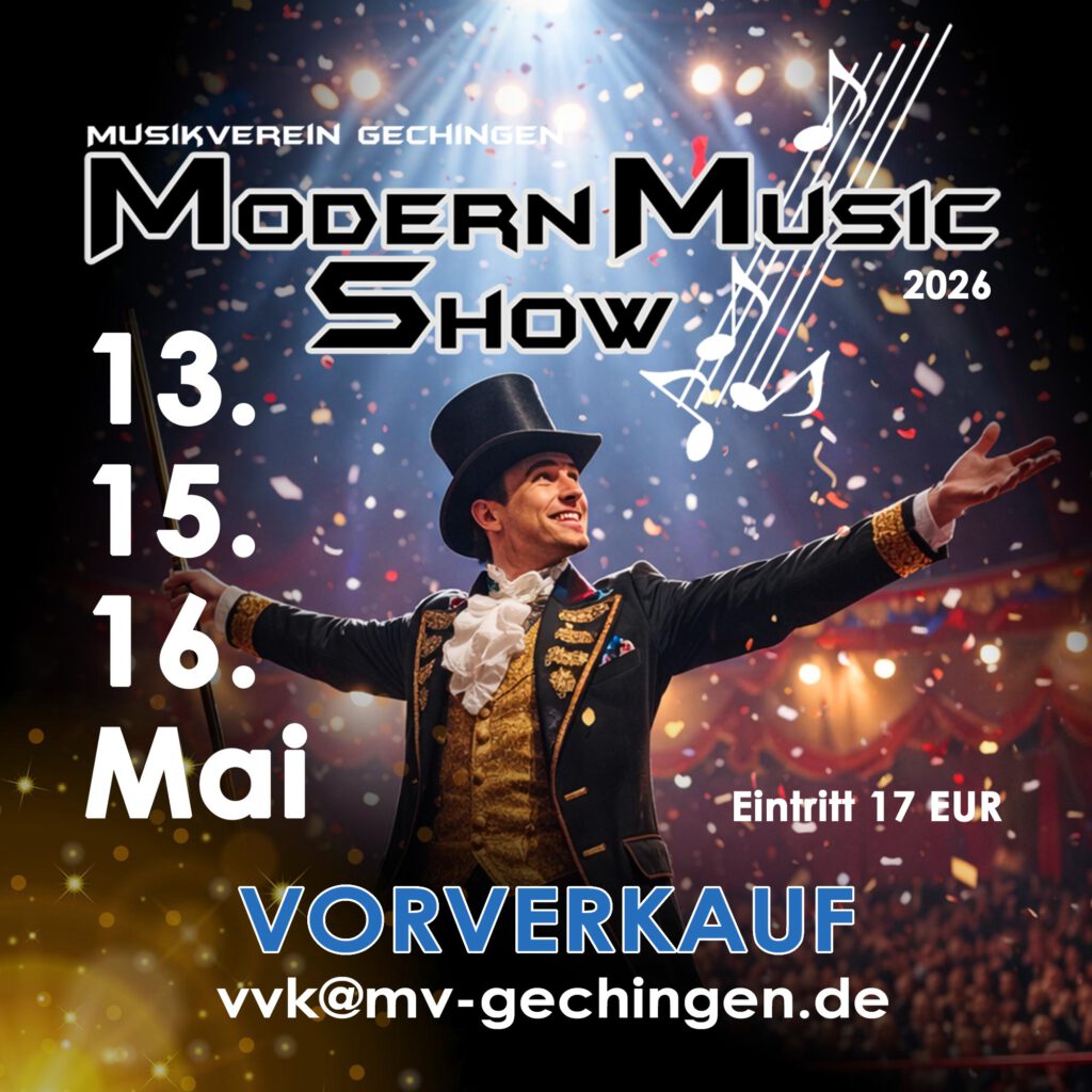 Um die Vorfreude zu steigern, werfen Sie doch schon jetzt einen Blick auf unseren YouTube-Kanal mit vielen Höhepunkten vergangener Modern Music Shows. Weitere Infos und Eindrücke gibt es auf unserer Website www.mv-gechingen.de sowie auf Facebook und Instagram.